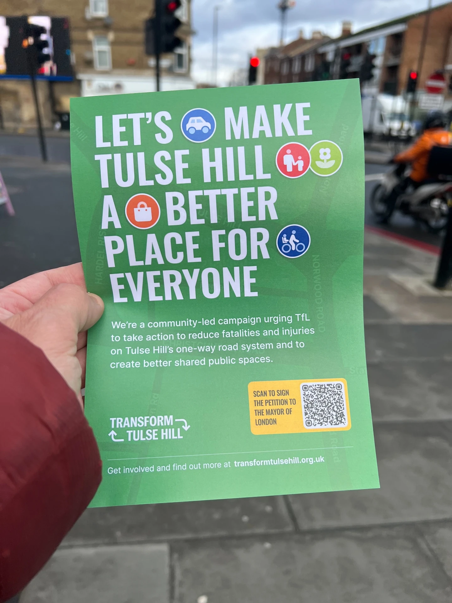 Transform Tulse Hill is a community-led campaign aiming to improve road safety on South London’s dangerous one-way gyratory in Tulse Hill.