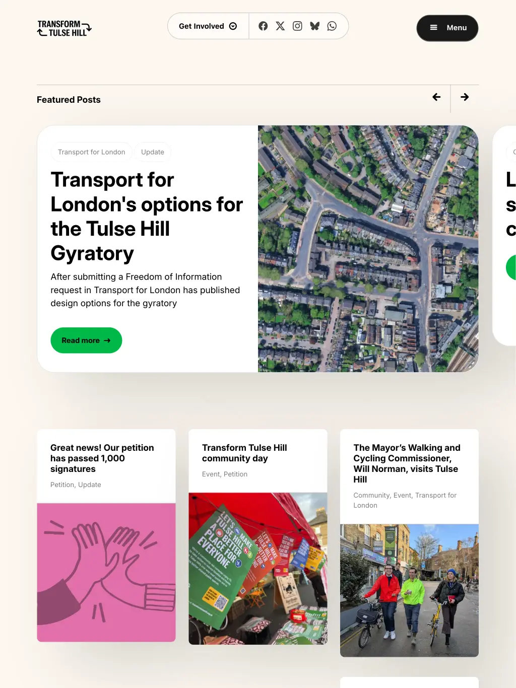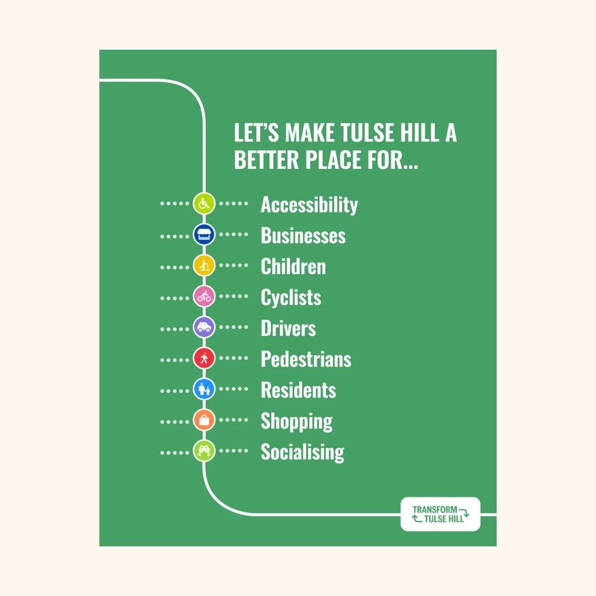 Transform Tulse Hill (TTH) is a community-led campaign aiming to improve road safety on the dangerous one-way gyratory in Tulse Hill, South London.